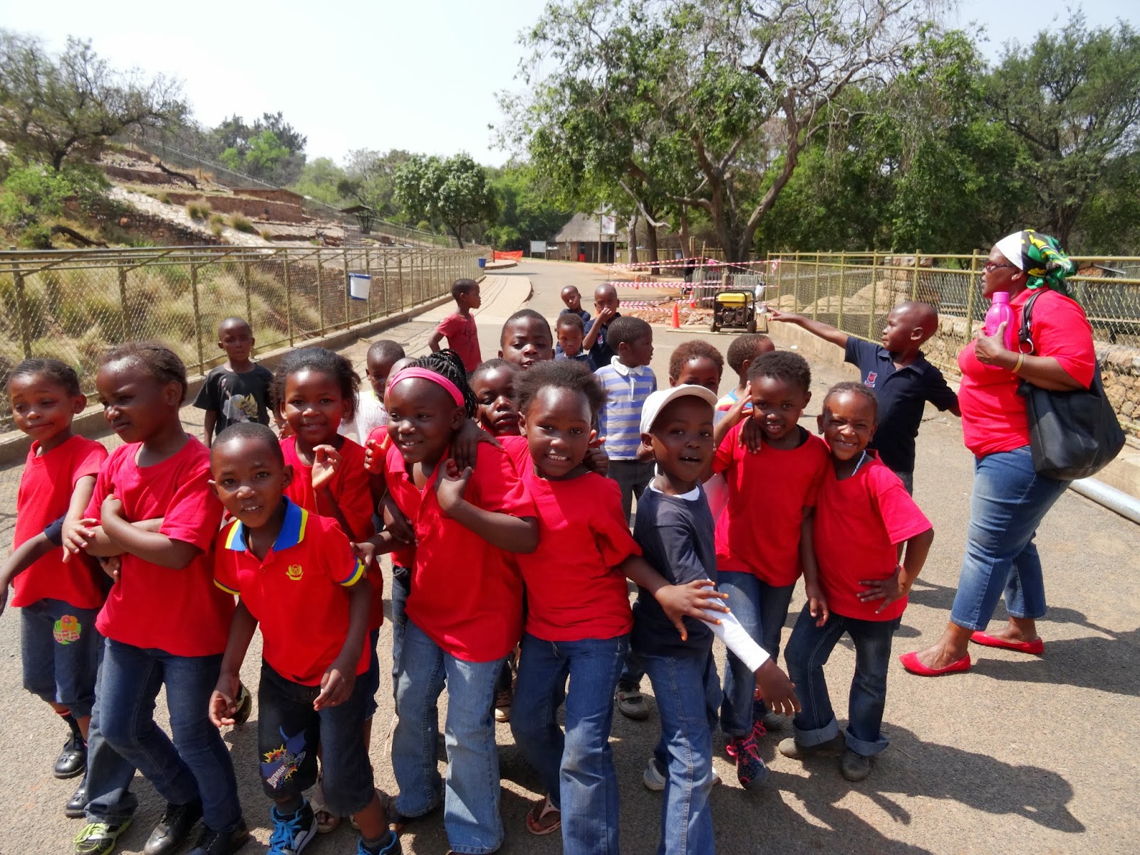 Erstmal muss ich auch von der Busfahrt berichten! Man sitzt in einem Zieharmonikabus mit 100 Kindern und ca. 10 Lehrern, also sitzen immer 4-5 kids auf einer Dreierreihe .. die Kids sind zum Glück sehr schmal andernfalls passt das glaube ich gar nicht. Auf dem Hinweg ist das auch gar nicht schlimm, erst wenn dir auf dem Rückweg links und rechts der Schweiß von allen entgegenkommt ..aber die Kinder machen so eine Stimmung im Bus, da ist einem das auch egal. Man stelle sich vor 100 Kinder singen lauthals alle dasselbe lied und sie singen und singen und singen!Einfach der Hammer was fuer ein Feeling da aufkommt, da kann man nur noch gute laune haben! Afrikanische kinder singen und tanzen sowieso gerne und dann singen auch alle zusammen und alle kennen den Text und sie haben auch keine Hemmungen oder sowas..das macht einfach Spaß und man möchte mitsingen, nur leider kann ich die Sprache nicht so ganz :D. Naja wenn man am ende nicht halb taub ist, dann war es echt eine super Fahrt. Dann im Zoo gehts weiter, sobald man mit den kids einen tiger sieht schreien deine 45 kinder : "tiger!!tiger! tiger!". Diese Zootiere sind schon echt abgehärtet glaube ich. Es ware echt ein schöner Tag!